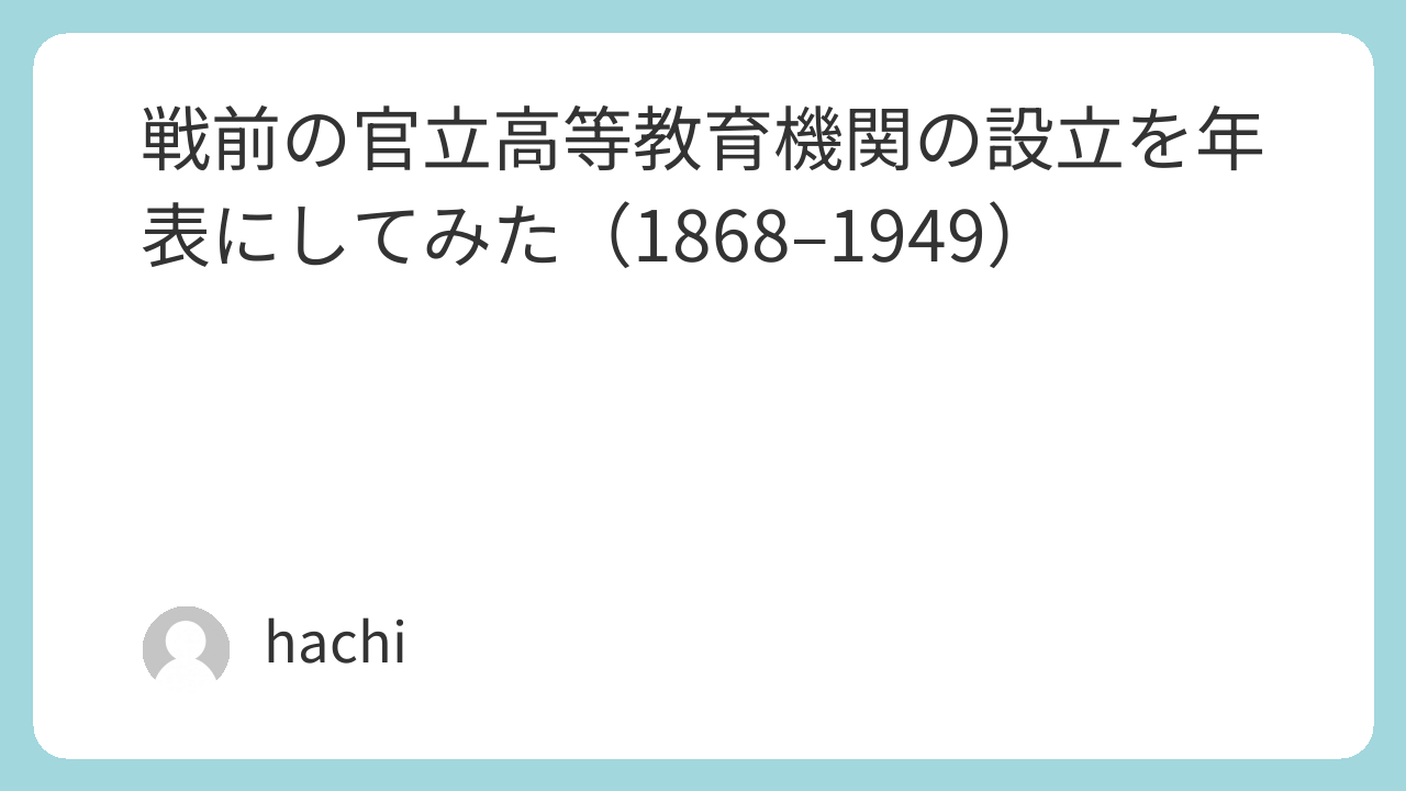 戦前の国立の高等教育機関(主に理工系)を設立年順に並べた表です。