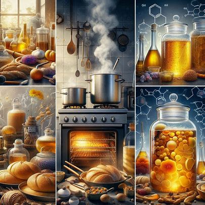 加熱はまた、メイラード反応と呼ばれる複雑な化学反応を引き起こす。アミノ酸と還元糖が反応して褐色物質メラノイジンを生成し、独特の香りと色を生み出す。パンの焼き色、コーヒーの香り、味噌の色はすべてメイラード反応の産物である。