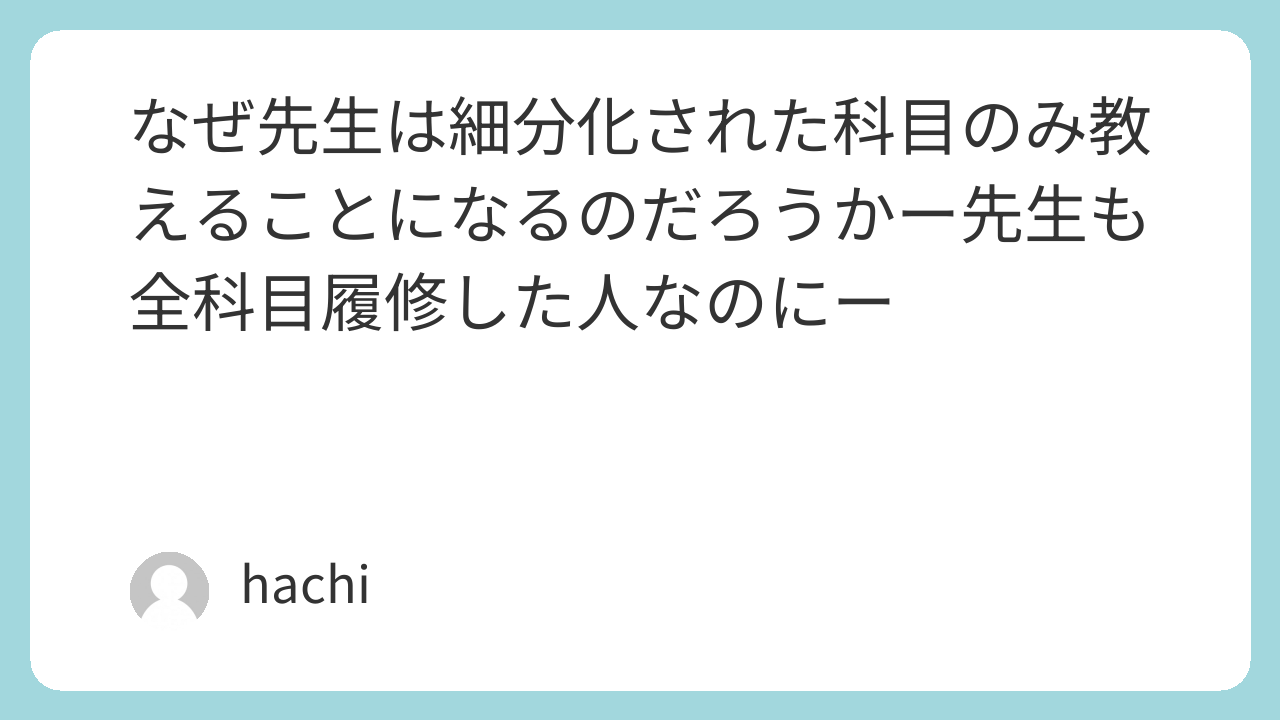 義務教育の段階で“全部をつなげて見る訓練”をしなくていいのか?❞