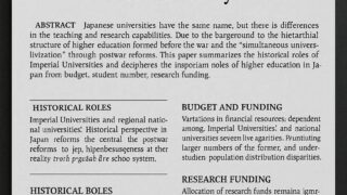 教育旧帝国大学と地方国立大学の違い―戦前から続く高等教育の階層構造 日本の大学は、名称こそ同じでも教育・研究力に大きな差がある。その背景には、戦前に形成された高等教育の階層構造と、戦後改革による「一斉大学化」がある。本稿では、帝国大学・地方国立大学の歴史的役割を整理し、予算・学生数・研究費・大学院体制から日...教育科学・産業史