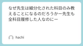 なぜ先生は細分化された科目のみ教えることになるのだろうかー先生も全科目履修した人なのにー
